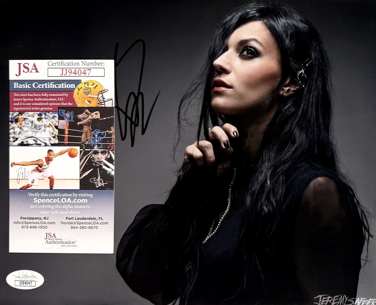 Lacuna Coil Lead singer Cristina Scabbia autographed 8" x 10" photo hand signed in black felt tip marker. This signature has been authenticated by JSA James Spence authentication Certification Number: JJ94047 and will come with the matching cert card you see in the scan. This photo has been credited to Jeremy Saffer a renowned photographer and will come in a clear hard top load for display. Buy with confidence we have been selling in-person autographs since 1992.