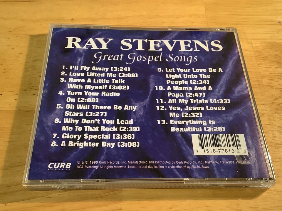 Great Gospel Songs by Ray Stevens (CD, Dec-1995, Curb). Preowned in good condition. 13 gospel songs produced in 1996. Feel free to email with questions. I do combine shipping on multiple purchases. Have a great day!