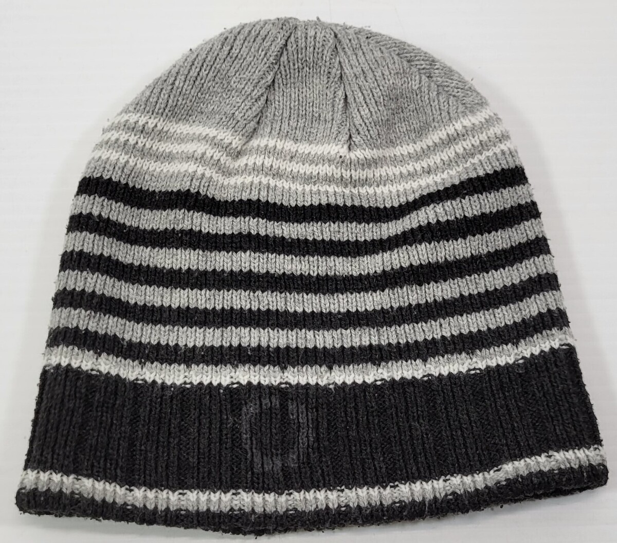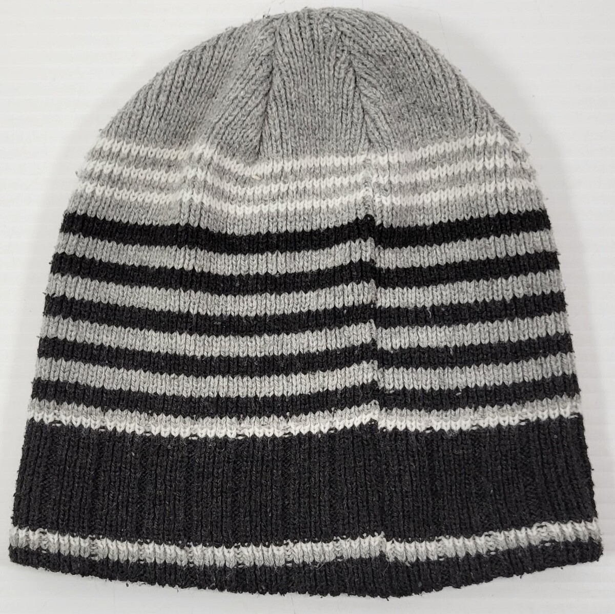 VR) Adult Knit Beanie Winter Striped Gray Black Acrylic Hat