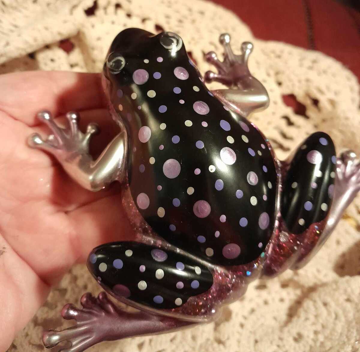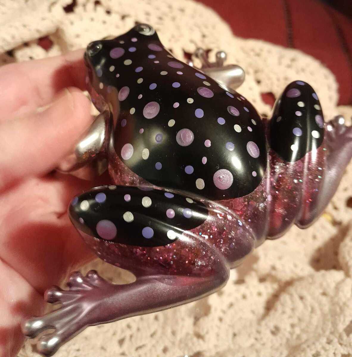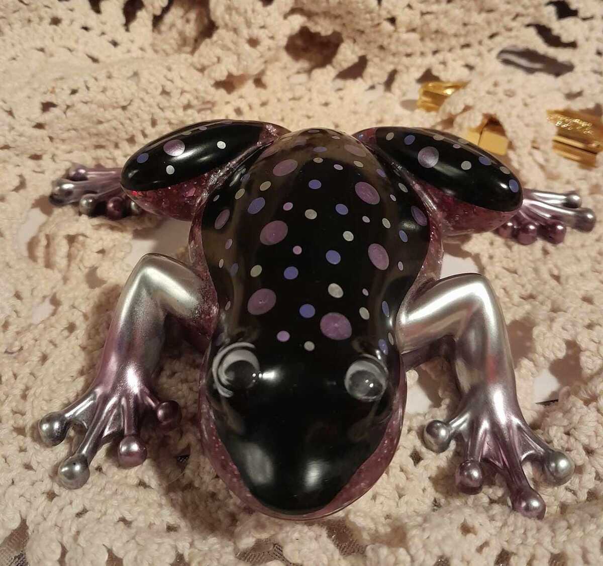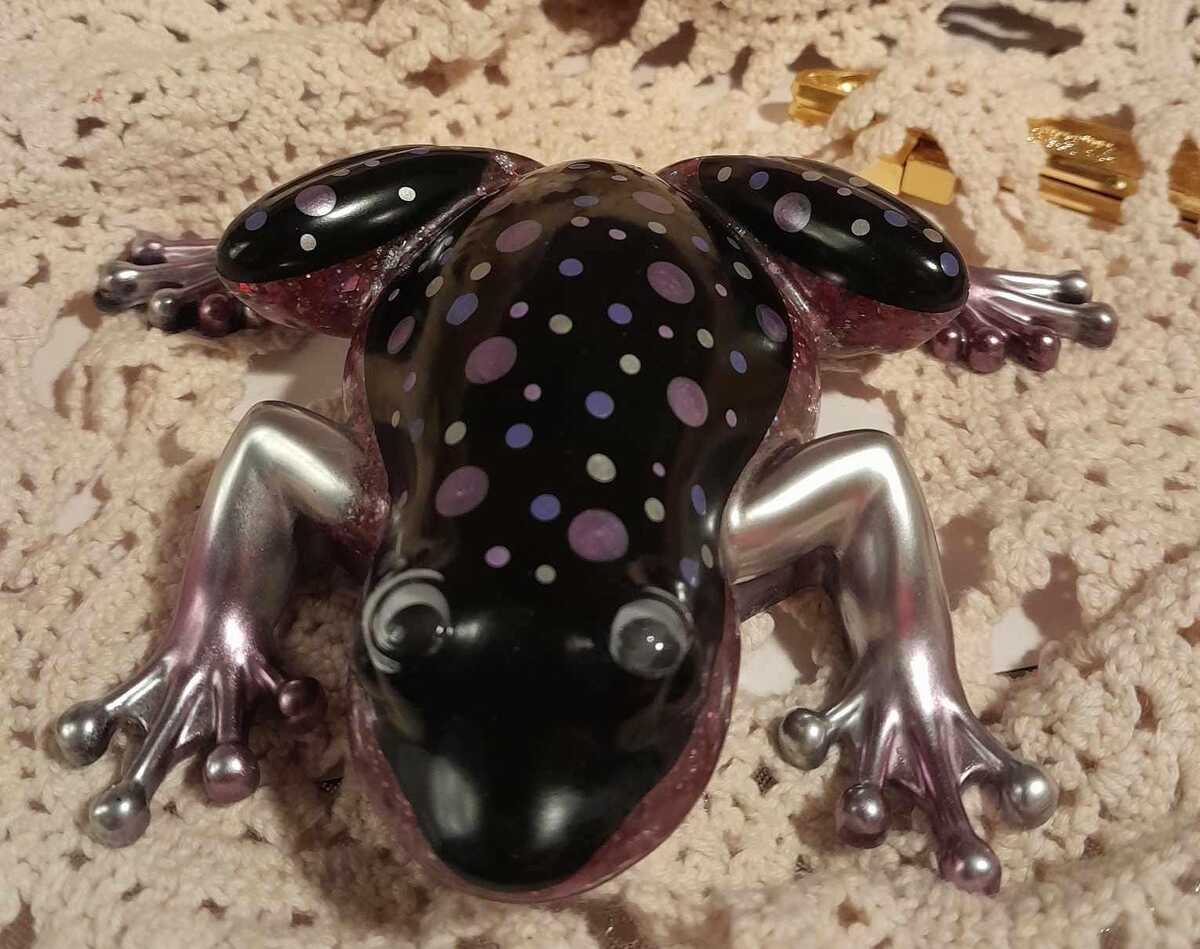 Purple Chrome FROG Froggo Dotted Themed Mixed Media Desk Buddies Unique Handmade