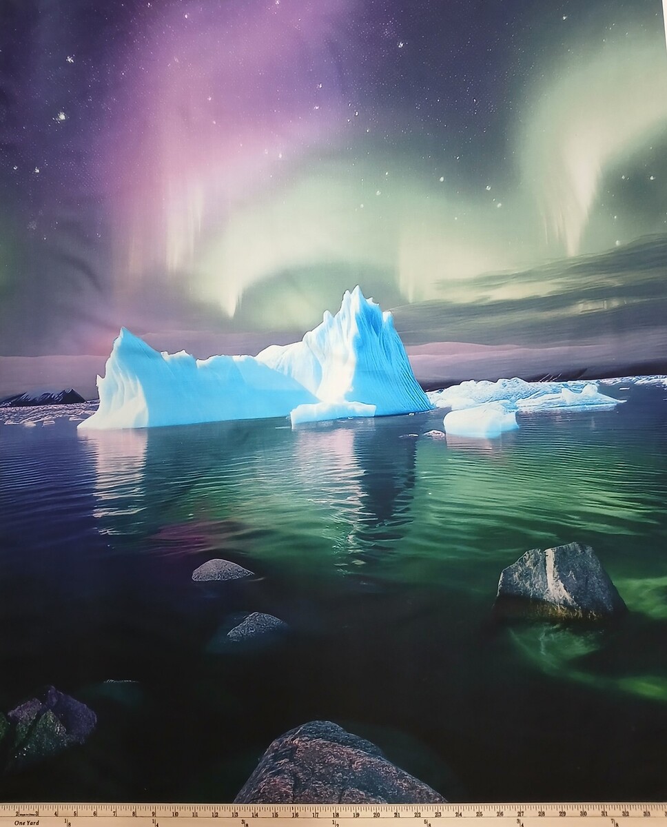 36" X 44" Panel Aurora Ice Northern Lights Icebergs Cotton Fabric Panel D484.57