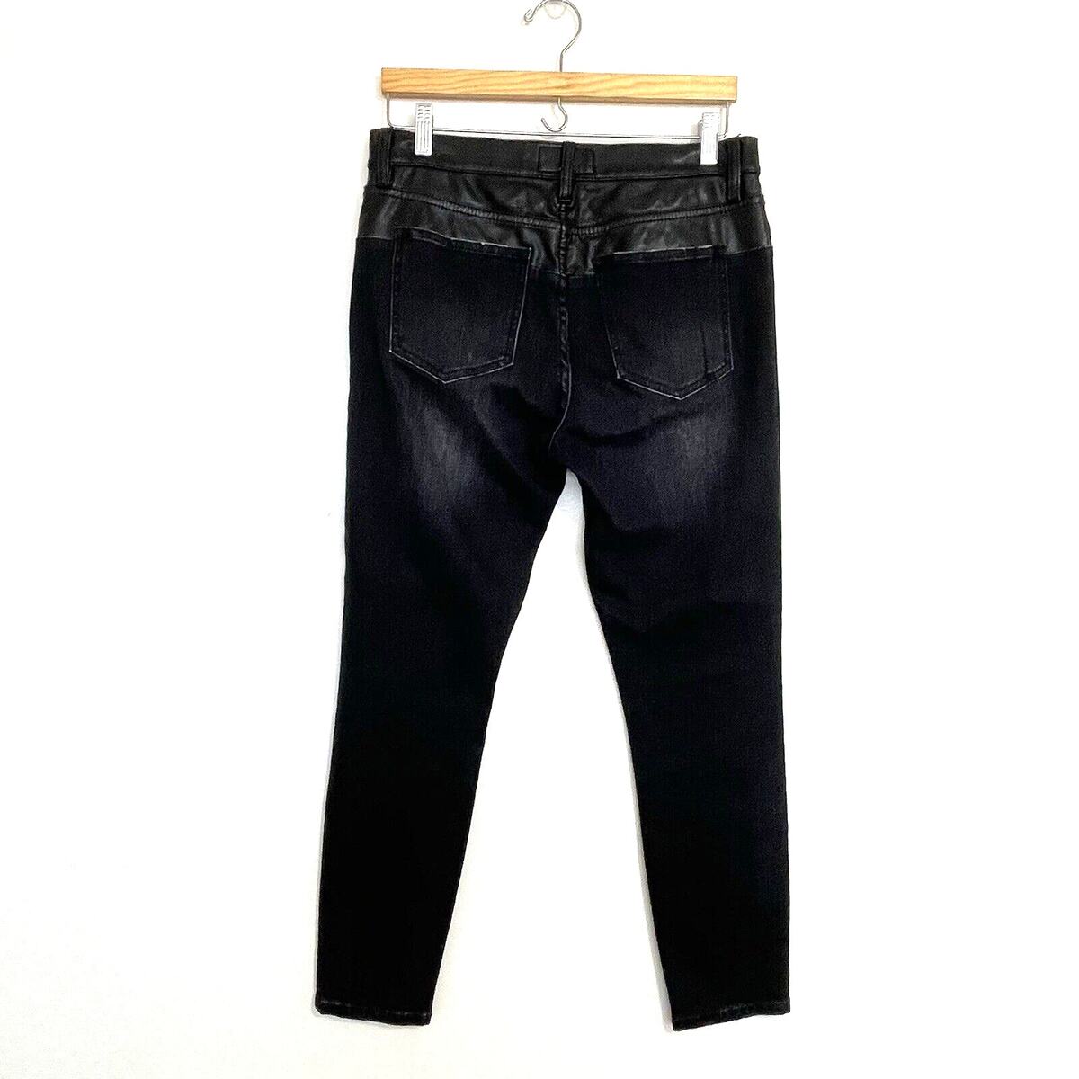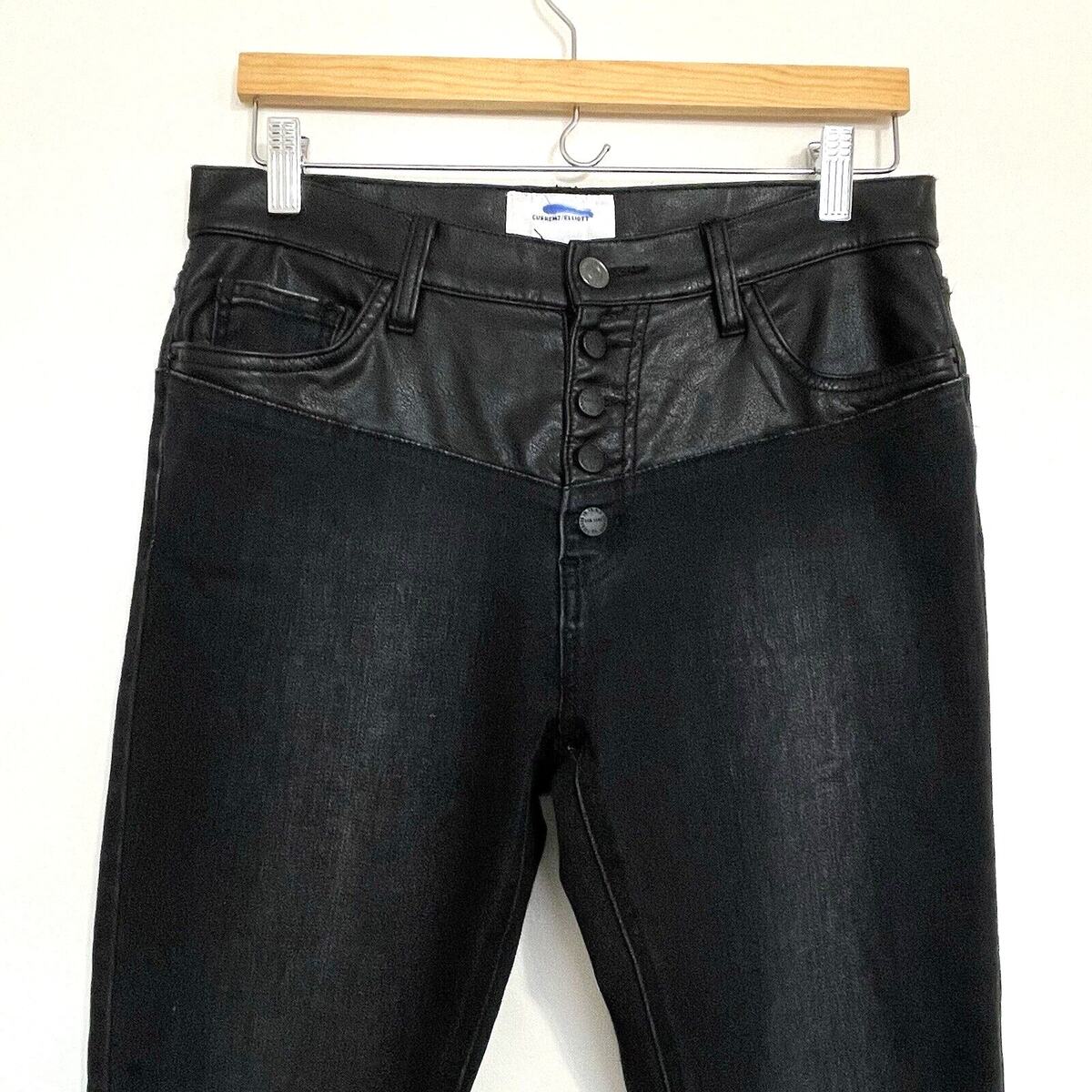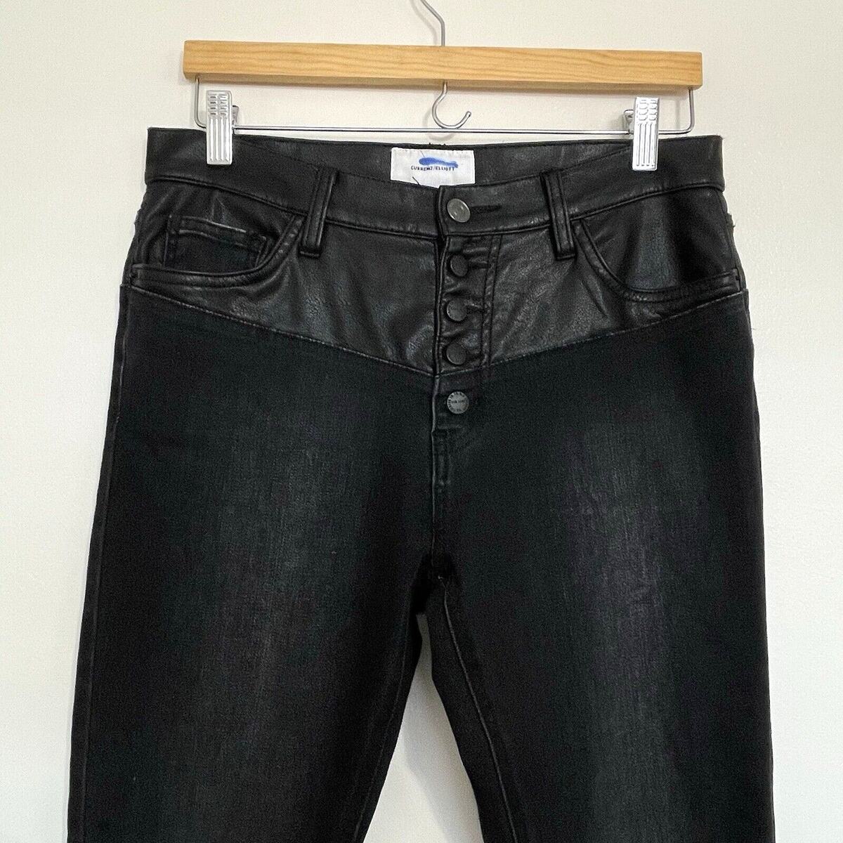 Current Elliott The Fused Faux Leather Skinny Jeans Size 28 Black Denim Moto Emo