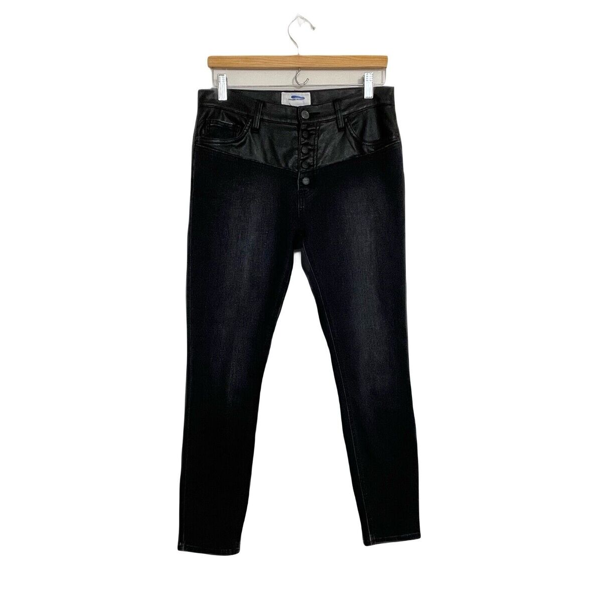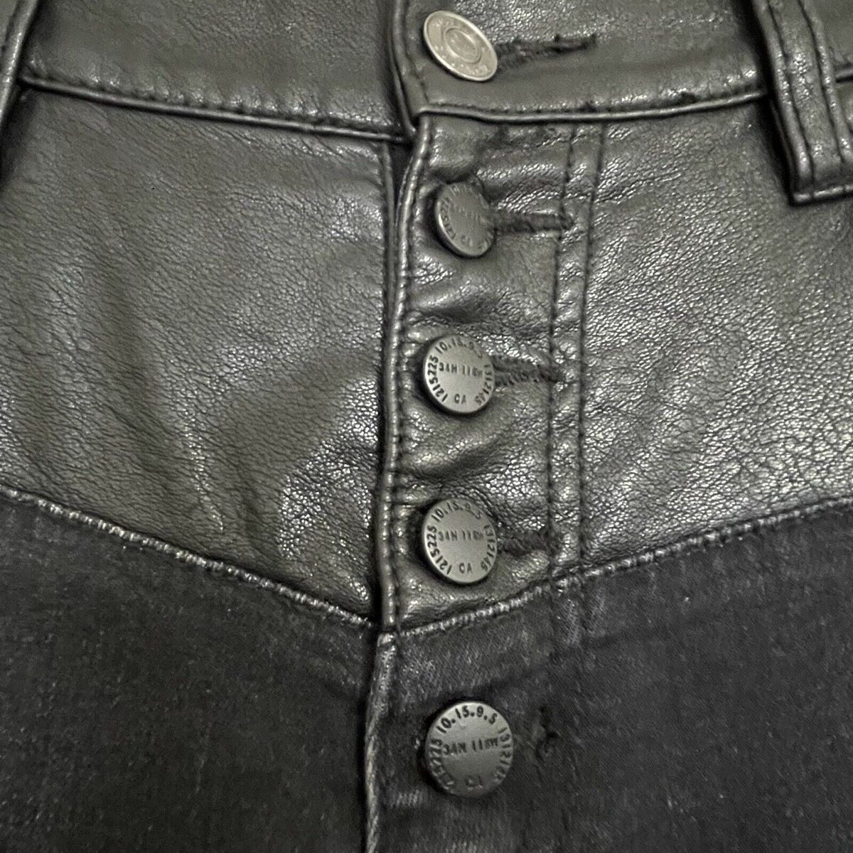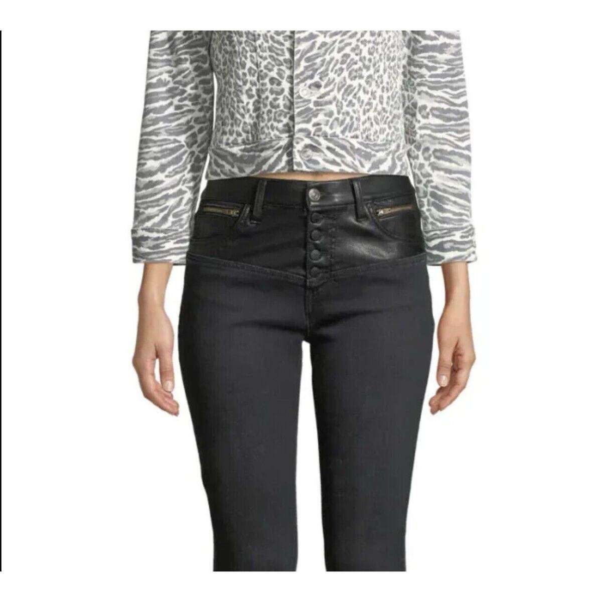 Current Elliott The Fused Faux Leather Skinny Jeans Size 28 Black Denim Moto Emo