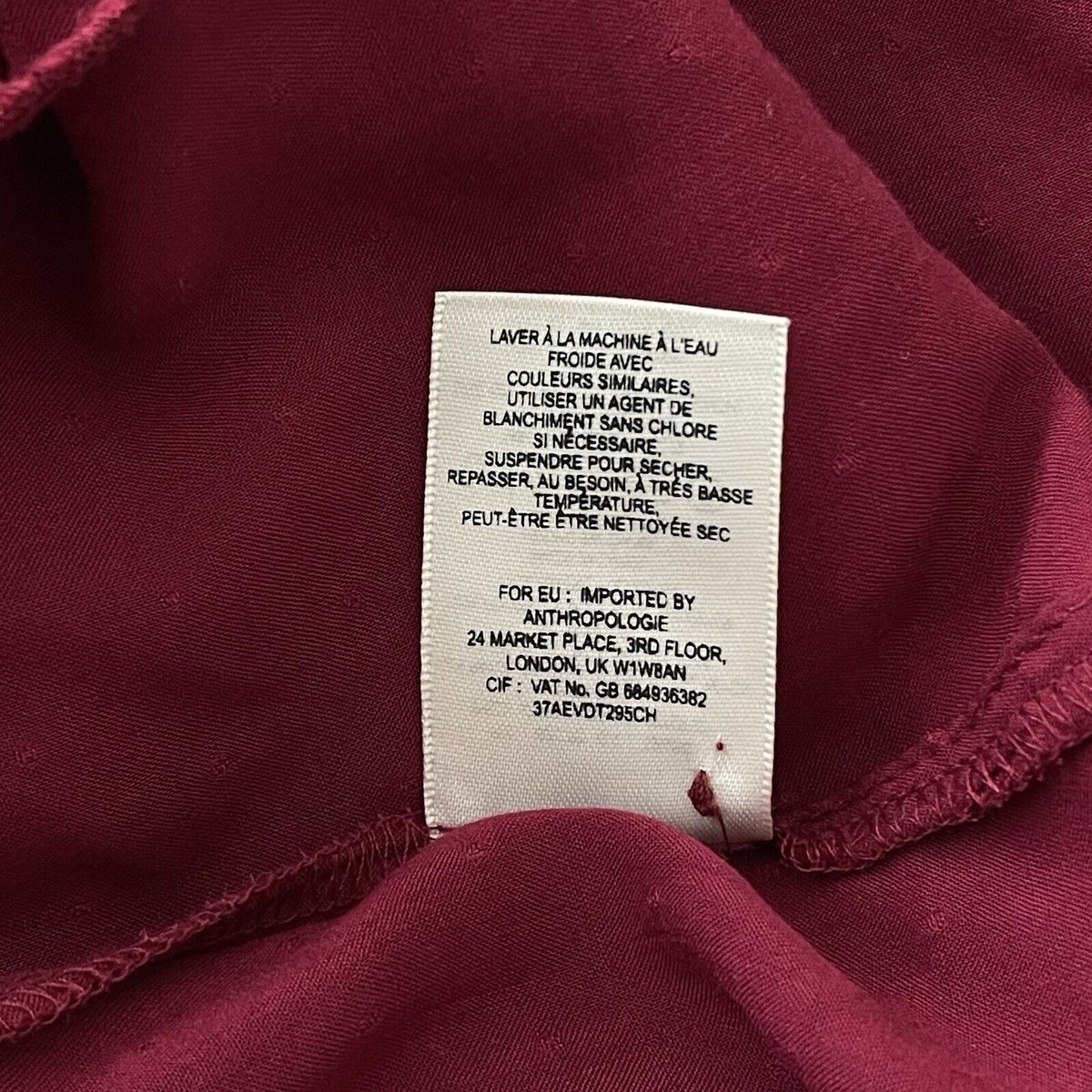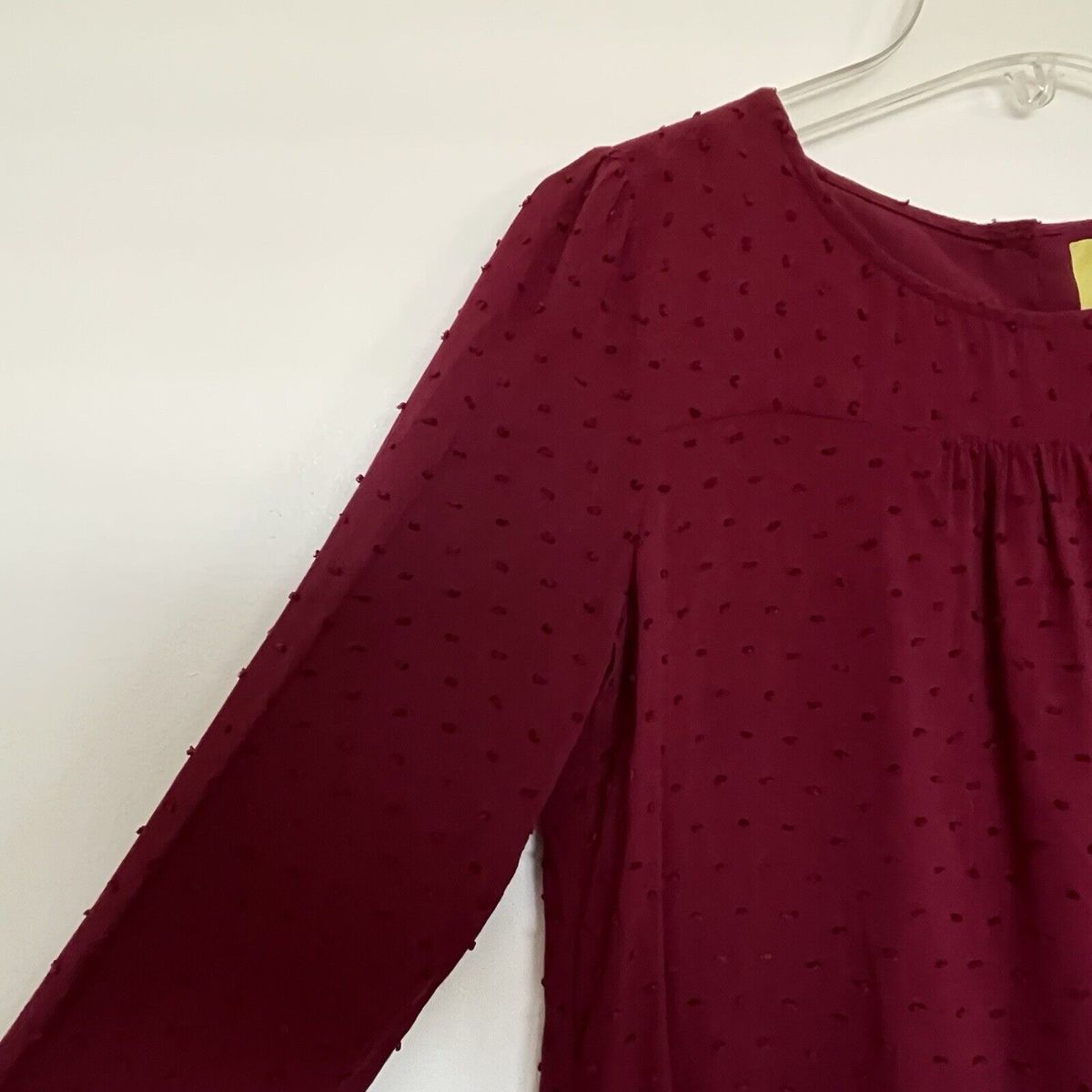 Maeve Anthropologie Emmeline Swiss Dot Blouse Size 0 Burgundy Red Casual Holiday