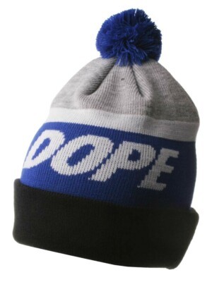This is for a brand new with tags Dope Couture Black Blue and Grey Victory Pom Beanie Winter Hat The Dope Couture Victory Beanie features a folded cuff and top pom
