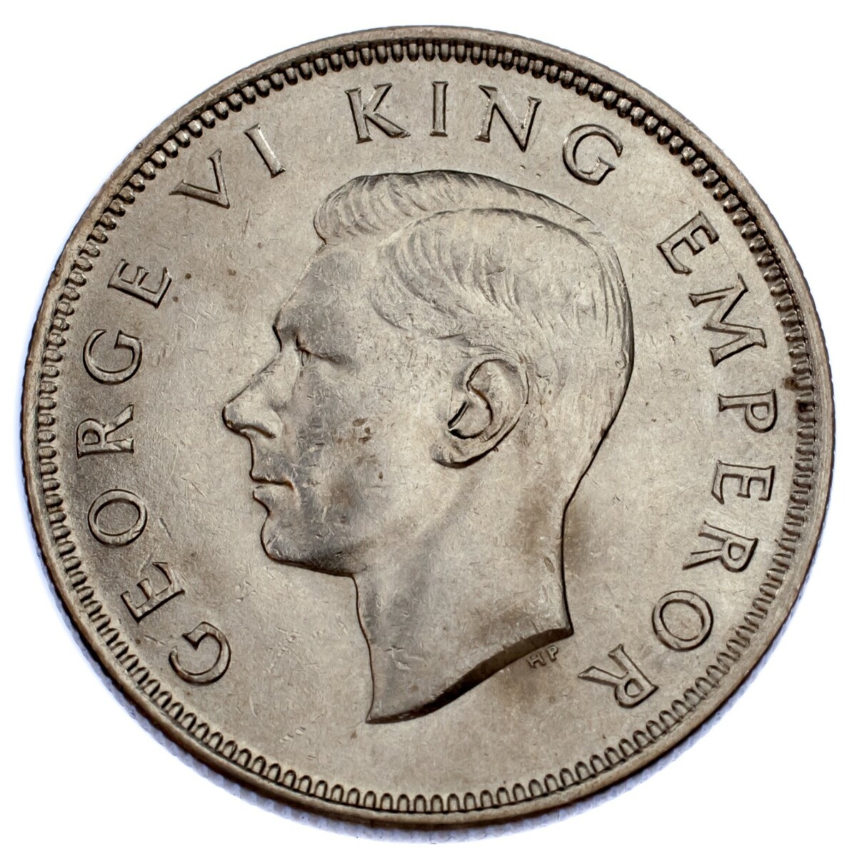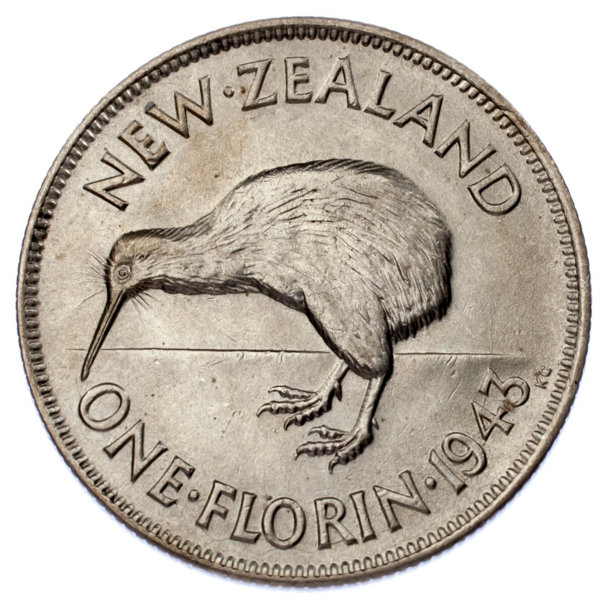 1943 New Zealand Florin Silver Coin (AU Condition) KM 10.1