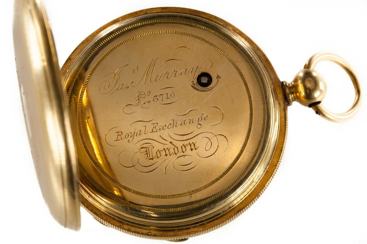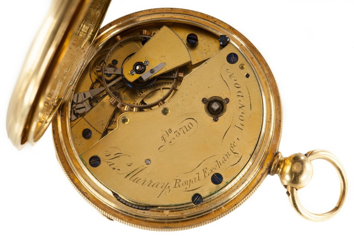 Montre de poche ouverte a cadran ouvert en or jaune 18 carats James Murray Royal Exchange