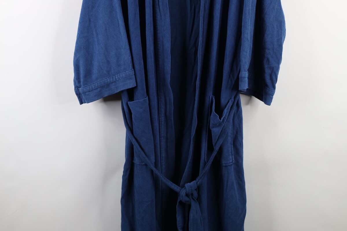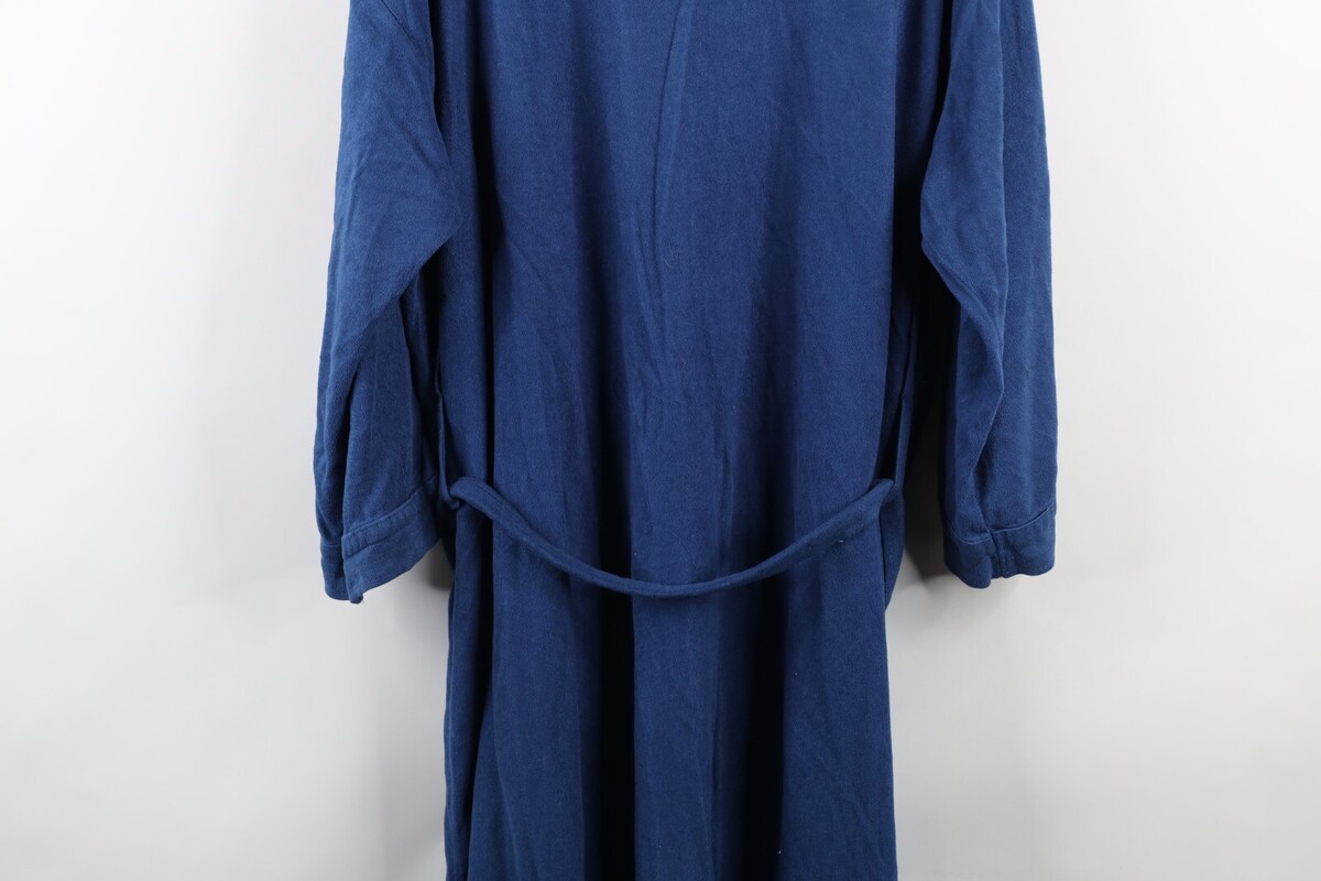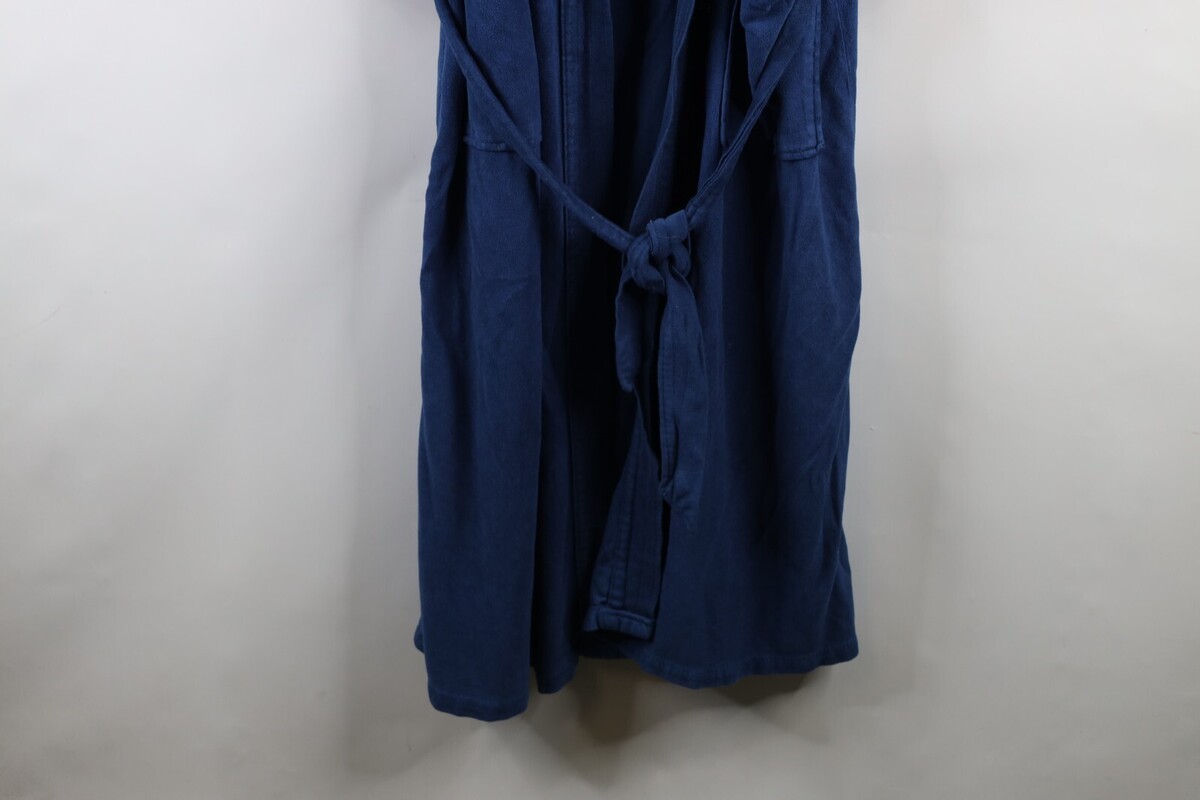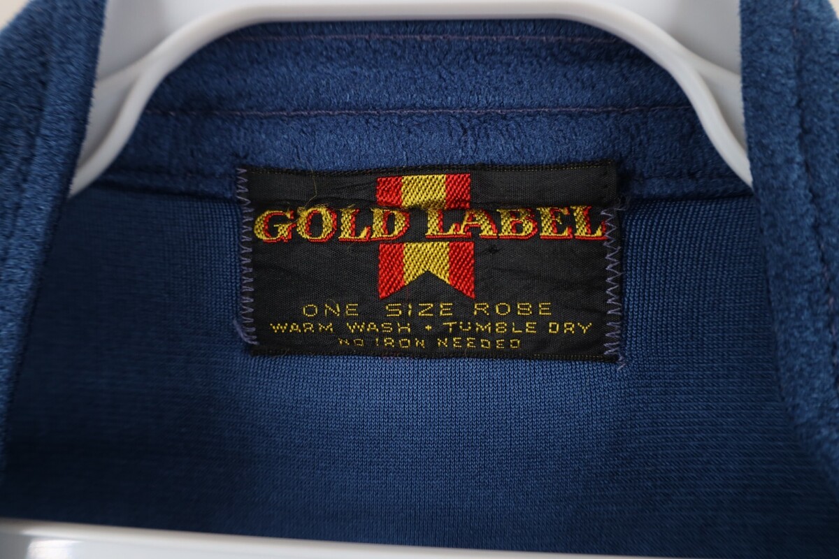 Vintage 60s 70s Rockabilly Mens OSFA Distressed Belted Velour Bath Robe Blue USA