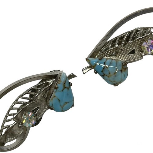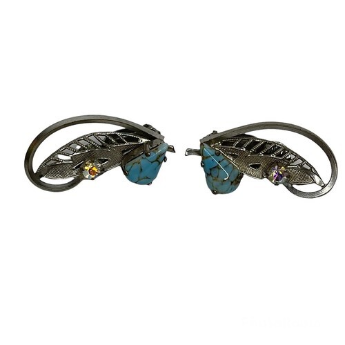 Vintage Silver Tone Leaf Teal Stone Clip On and 13 similar items