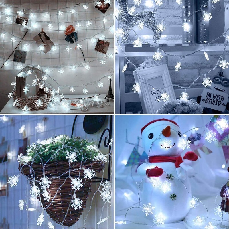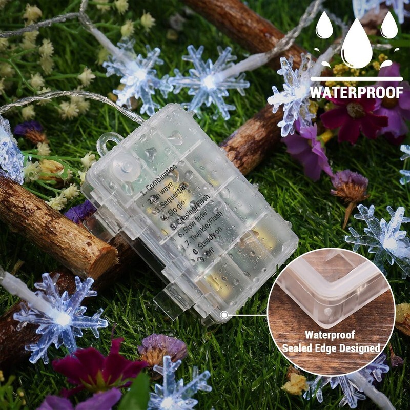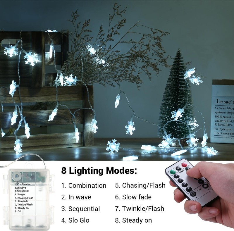 White Snowflake Christmas String Lights, 16.08Ft 40 LED Christmas Lights with Re