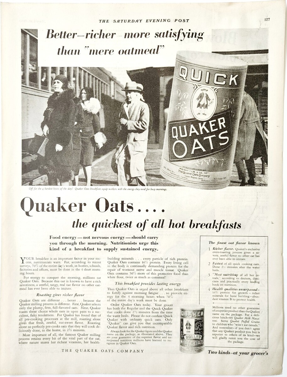 1930 Quaker Oats Cereal Rolled Oat Advertisement Hot Breakfast Foods DWJJ19