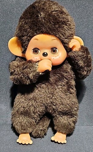 UP FOR SALE: Vintage 1970s Monchhichi Monchichi TOTSY Plush Doll Rattle Thumb Sucker 8" Brown
