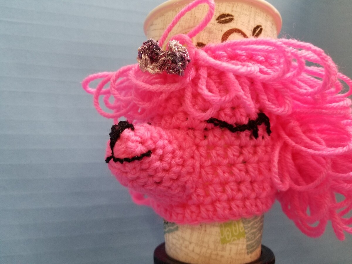 The novelty design of the cup cozy is an oblong vertical style, perfect for all occasions and made from yarn material.