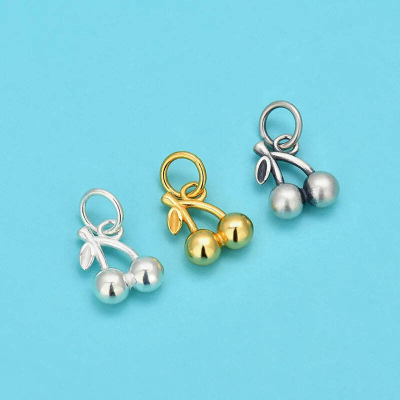 S925 Pure Silver Vintage Cherry Pendant Crystal Bracelet Necklace DIY Handmade B