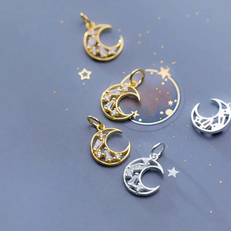 Handmade DIY 925 Silver Plated Moon Pendant Hollow Out Design With Embedded Zirc