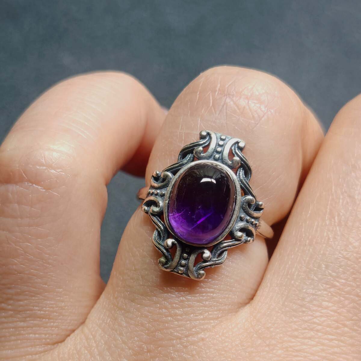 S925 Silver Inlaid Natural Crystal Ring Sea Pattern Peter South Red Amethyst Blu