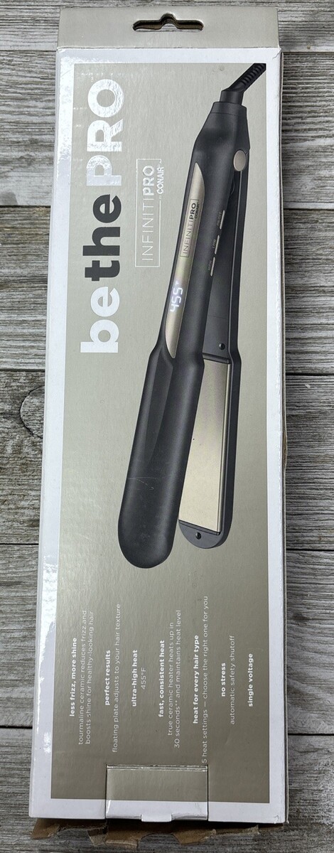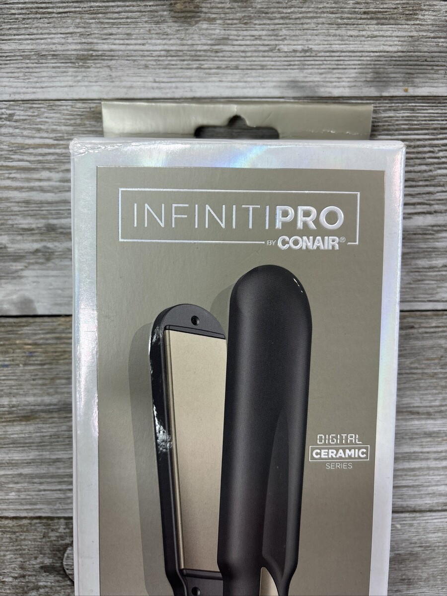 Open Box- Infiniti Pro Tourmaline Ceramic Flat Iron 1 1/4-inch Hair Straightener . Package may contain shelf ware, retail stickers or cosmetics imperfections. Box is damaged.