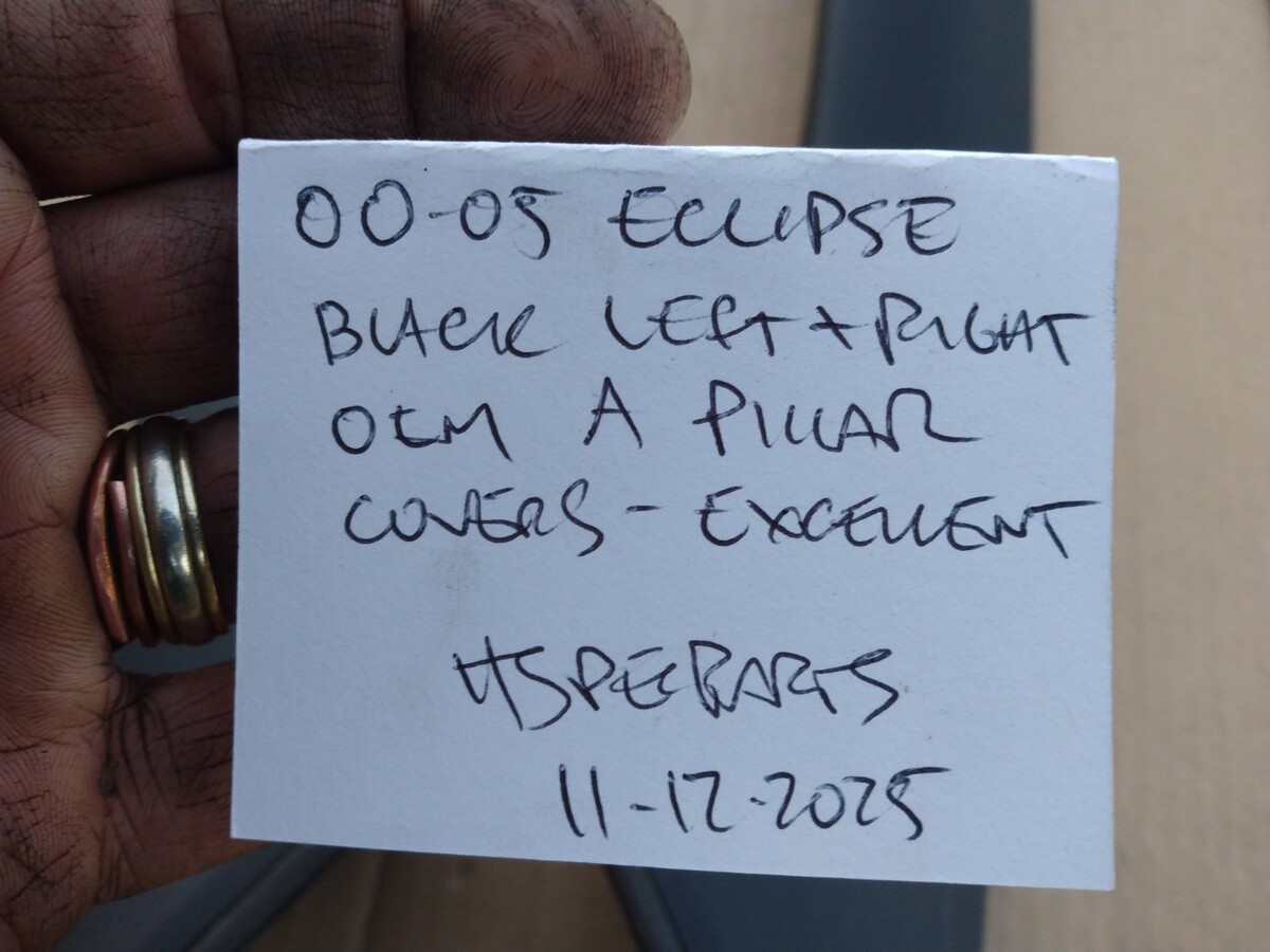 EXCELLENT USED CONDITION. MATCHING PAIR OF A PILLAR MOLDINGS IN BLACK FROM A 2003 ECLIPSE COUPE (NOT CONVERTIBLE). NO DAMAGE OR ISSUES OF ANY KIND. THEY DON'T EVEN HAVE. I E SCUFF OR SCRATCH. THESE SHIP USPS WITHIN A BUSINESS DAY OF PAYMENT.