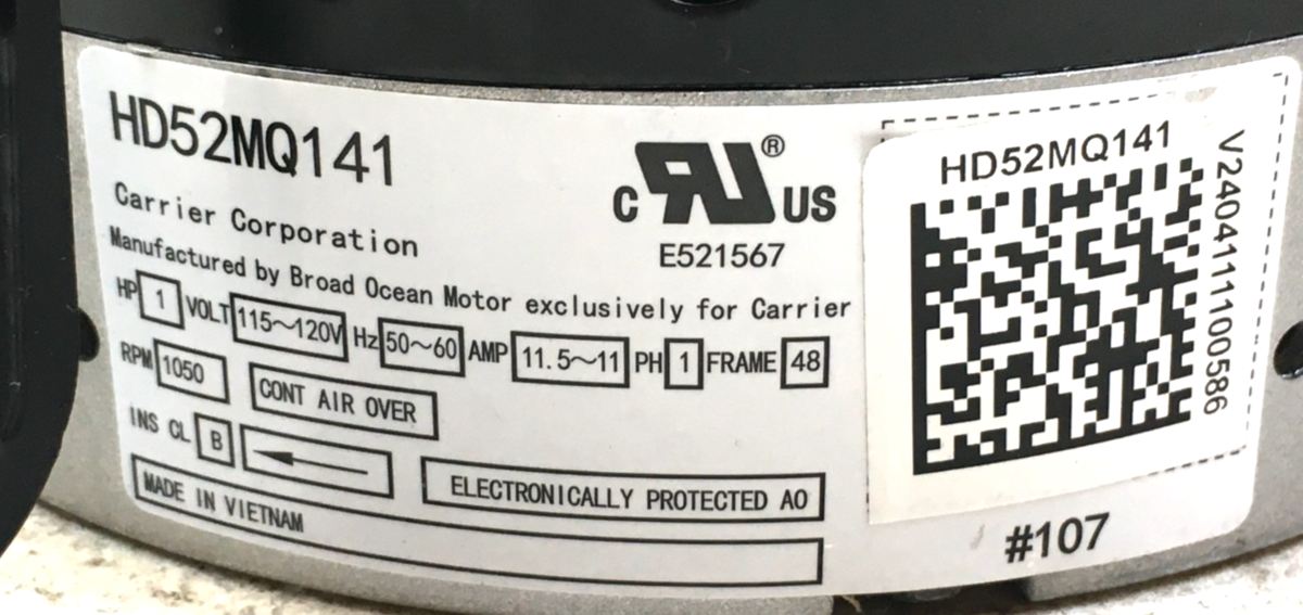 This is Zhongshan Broad-Ocean HD52MQ141 Blower Motor K00220058 1HP 115/120V 1050 RPM used part.