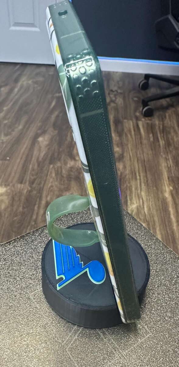 1x STL Blues-inspired Hockey Puck Phone Holder
