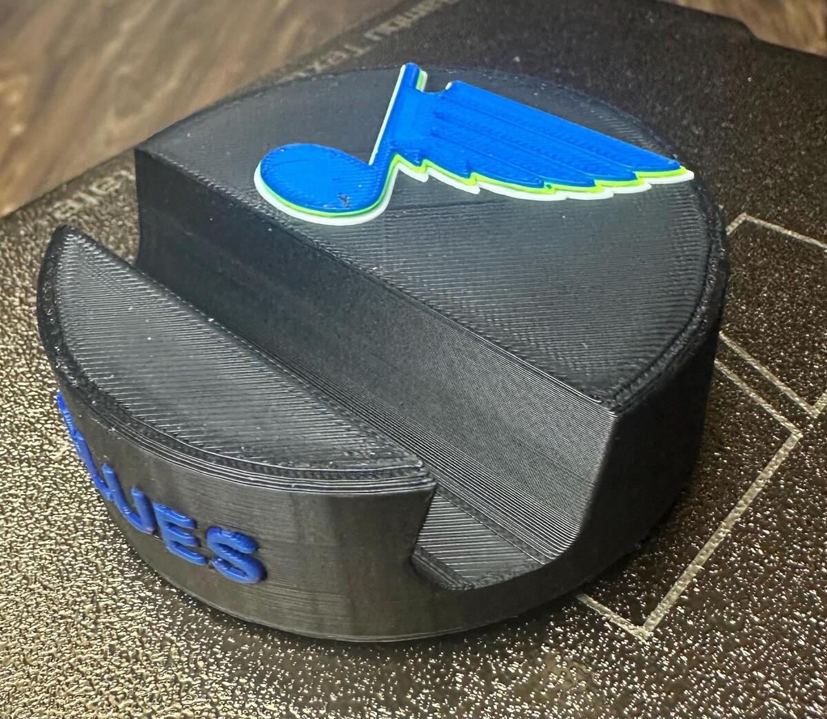 Hockey Puck Phone Holder – STL Blues Inspired Desk Stand | 3D Printed SportsGift