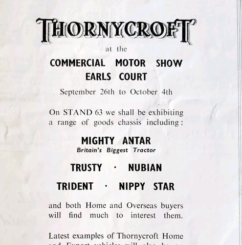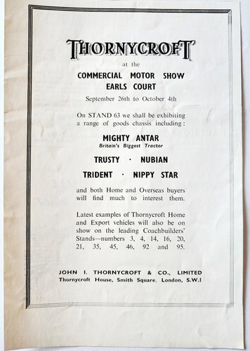 1952 London Earls Court Motor Expo Thornycroft Advertisement Sphere Import E91A