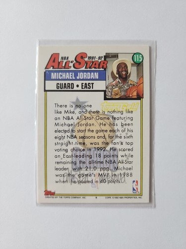1992 Michael Jordan #115 All Star Topps NBA Sports Card Ungraded Vintage E86RP6