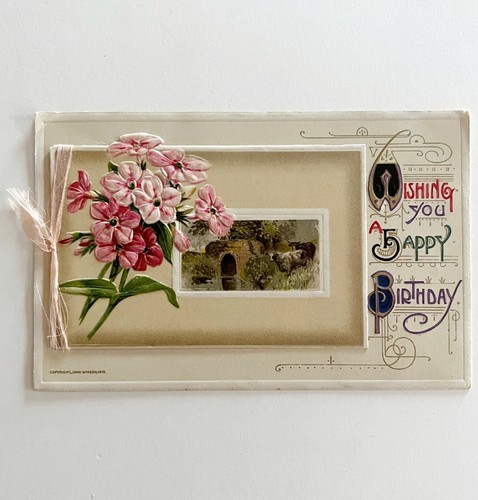 Happy Birthday Greeting Card 1910 Ribbon Embossed Flowers John Winsch PCBG3D