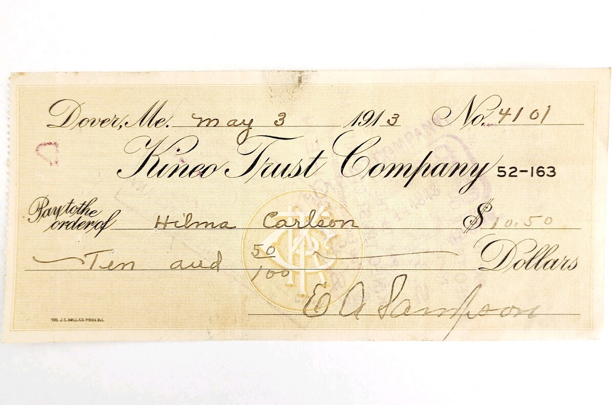 1913 Kineo Trust Company Bank Check E.A. Sampson Dover Maine Signed 4101 CHX5