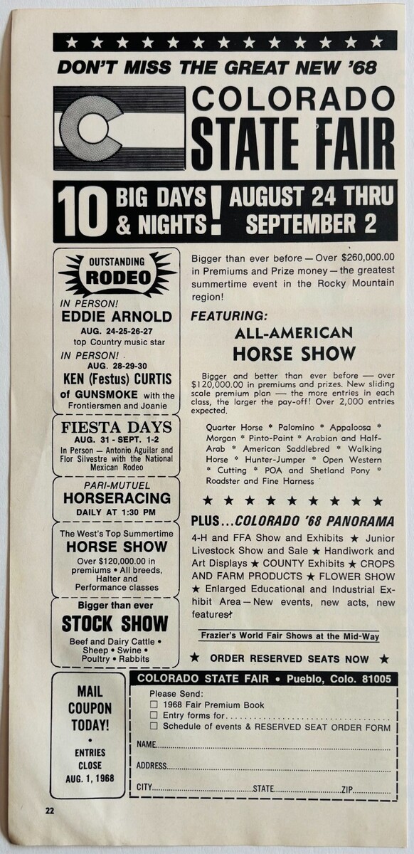 1968 Colorado State Fair Horse Show Advertisement Pueblo All American DWP9C