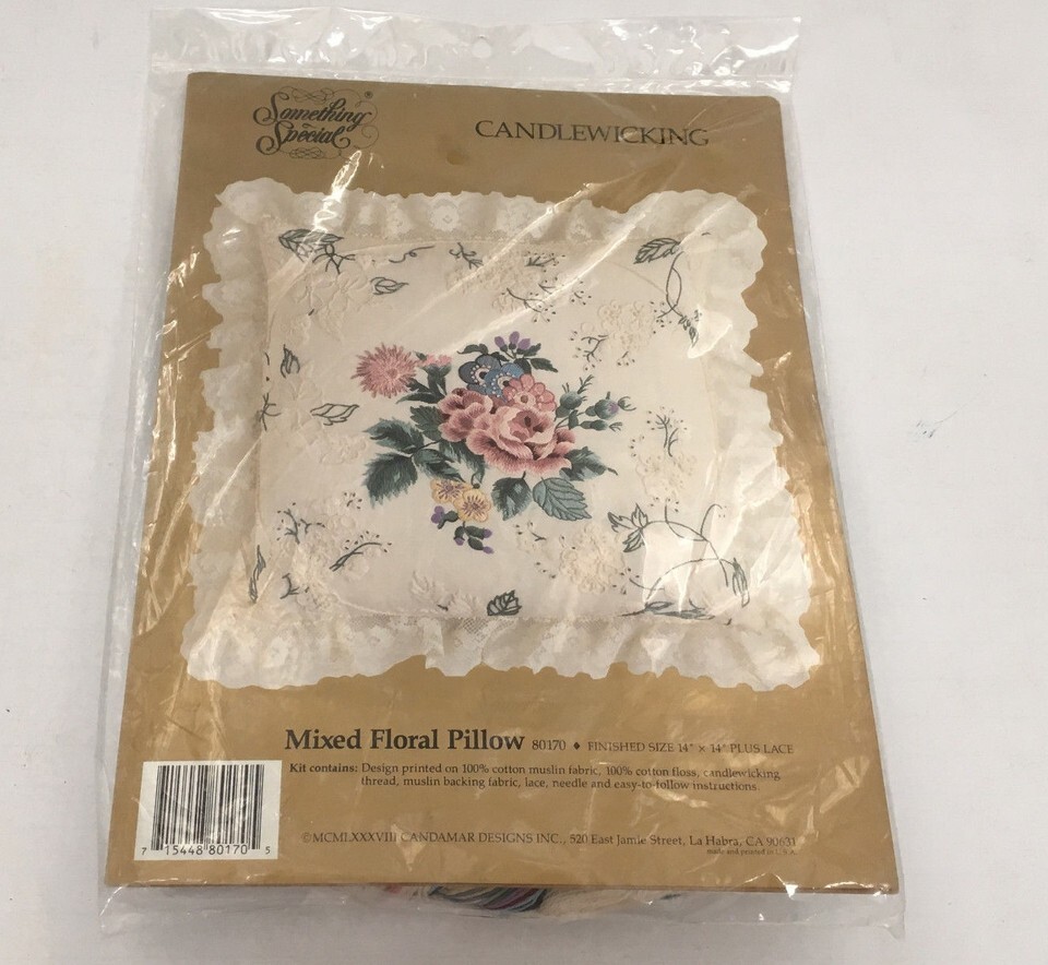 Vintage candlewicking kit mixed floral pillow something special brand never used