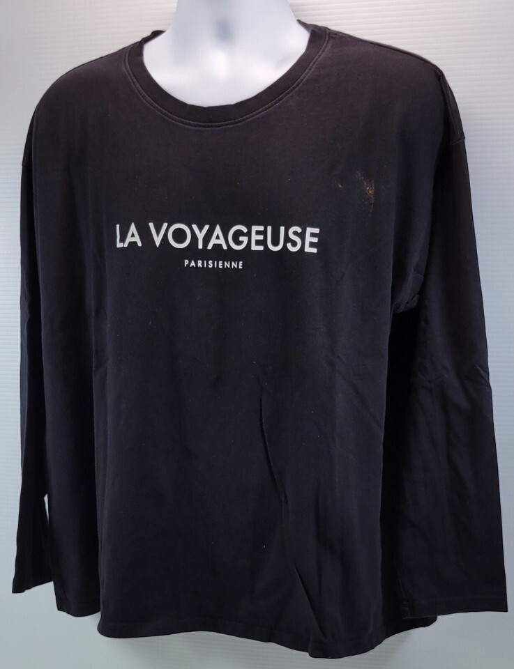 MT) H&M Black Long Sleeve Woman Cotton T Shirt XL La Voyageuse Parisienne
