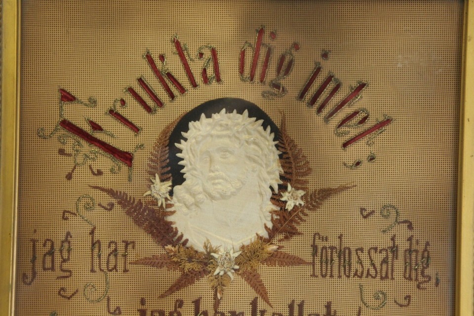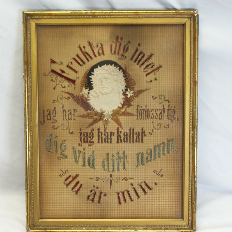 Swedish Religious Handmade Wall Art Do Not Be Afraid Jesus Needlepoint Cross