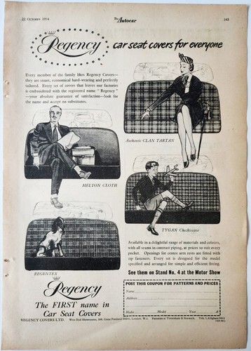 1954 Regency Seat Covers Earls Court Advertisement Motor Show Automobilia DWPP10
