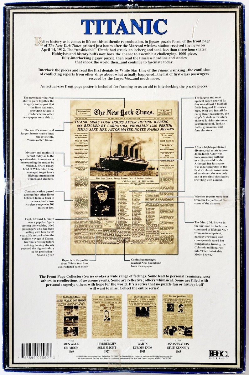 1998 Titanic Wreck Jigsaw Puzzle New York Times Front Page Herbko 1000 Pcs GstRm