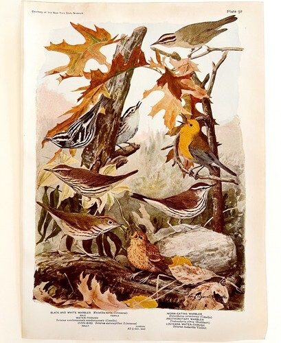 Warbler Varieties And Thrush 1936 Bird Lithograph Color Plate Print DWU12C