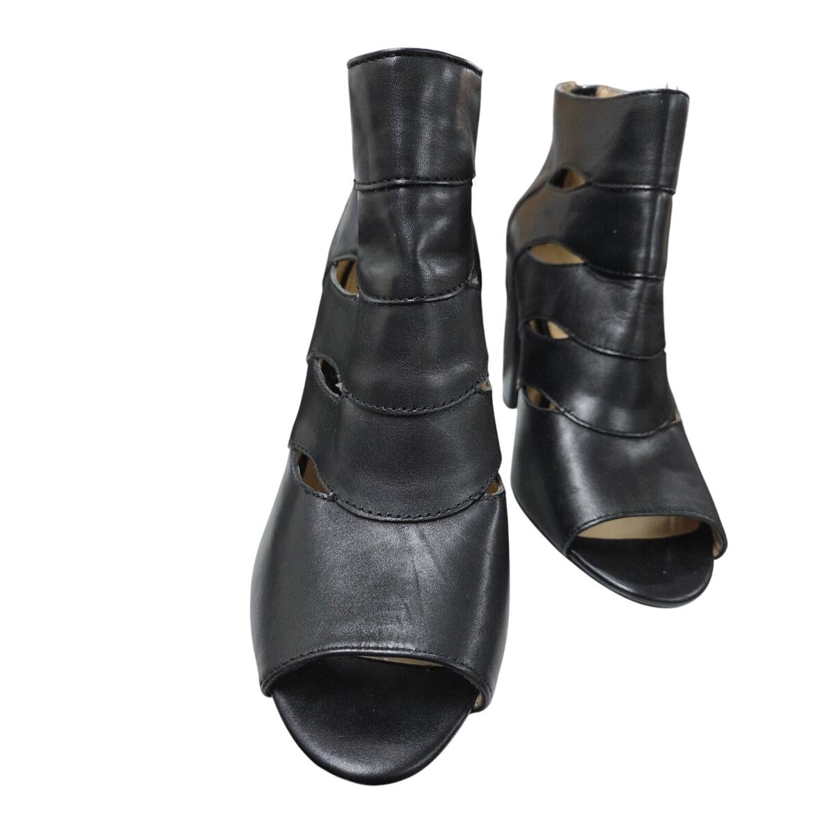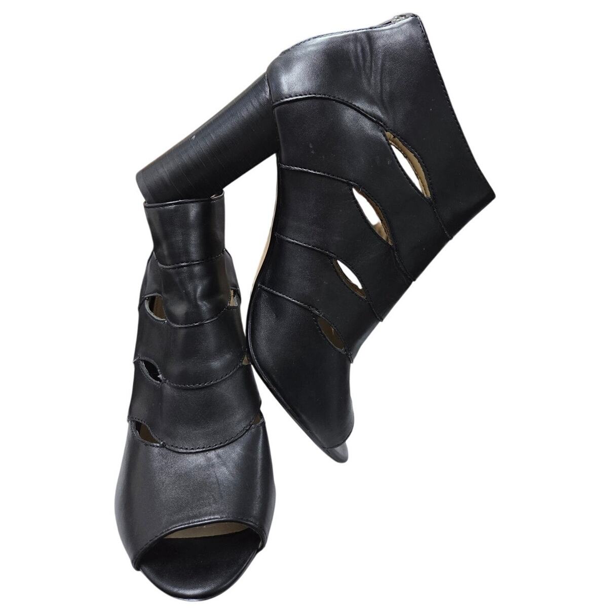 Adrienne Vittadini Black Cutout Peep-Toe Heels 9.5M Leather High Heel Dressy