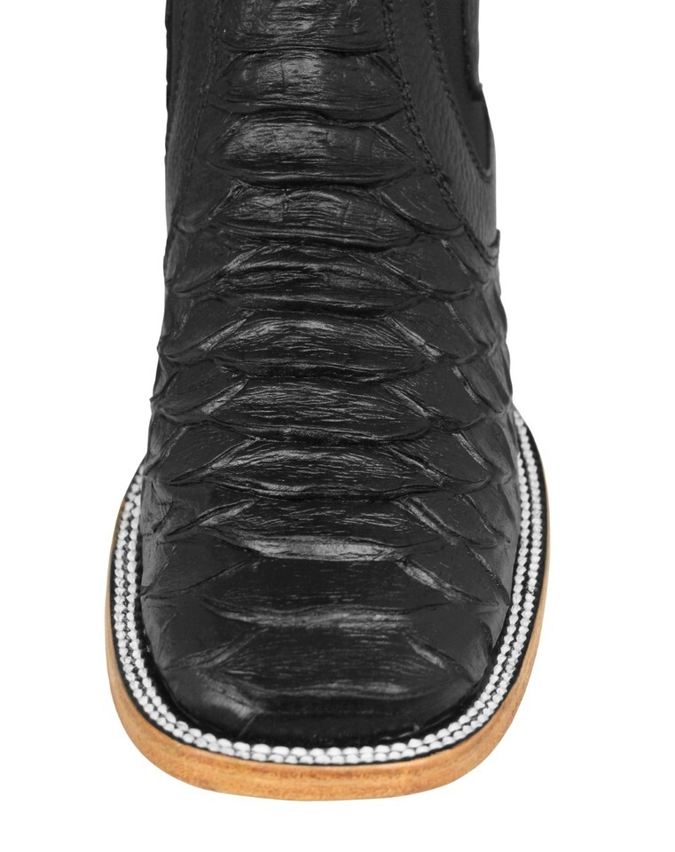 Mens Chelsea Leather Ankle Boots Black Snake Print Western Dress Square Toe Bota