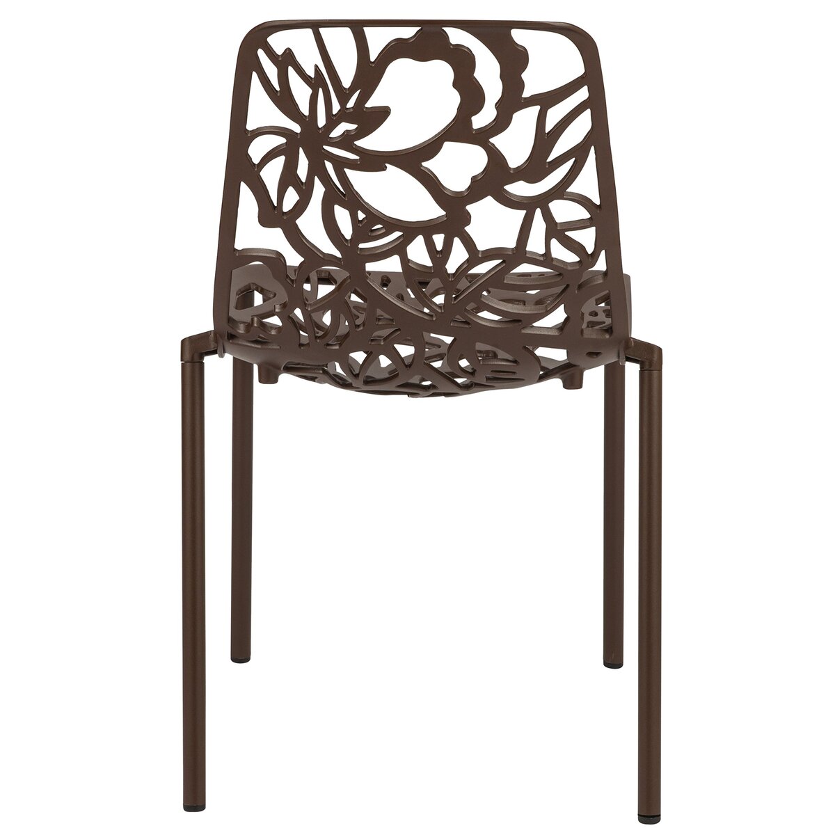 The dining set features an attractive flower design, adding a touch of charm and elegance to your outdoor or indoor space. The unique and eye-catching design enhances the overall aesthetics of your home. The dining table's high-quality tempered glass top adds a touch of sophistication and provides a durable and reliable surface for dining, combining elegance with practicality. The aluminum frame of the chairs and table provides superior strength, ensuring the set's longevity and ability to withstand daily use. The chairs are stackable, allowing for easy storage and saving space when not in use. You can conveniently stack multiple chairs together, reducing clutter and maximizing space. The dining set is crafted to elevate your outdoor gatherings. Whether it's a party or a simple meal in the open air, this set offers a comfortable and stylish seating arrangement for your guests. The dining set is equipped with plastic cap floor protectors, which prevent scratches and damage to your flooring, preserving its integrity and appearance. The dining set is designed for easy assembly, allowing you to quickly and effortlessly set it up to create a captivating dining area without any inconvenience.