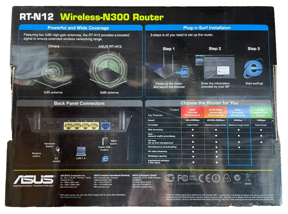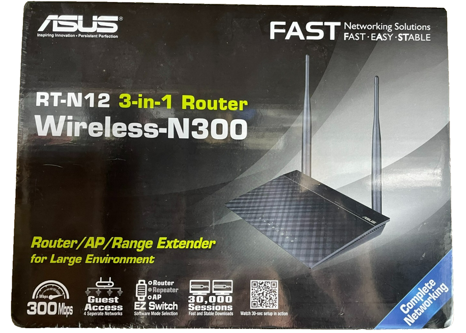 Asus RT-N12 3-in-1 Router Wireless N300 Router/Range Extender - Sealed Box!