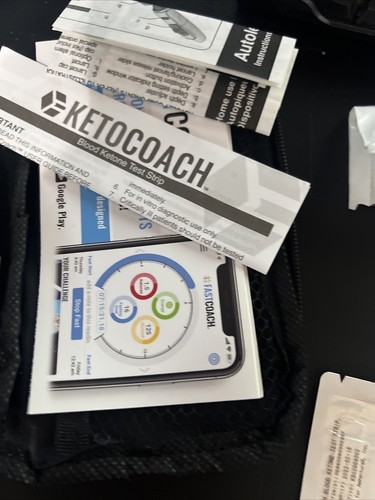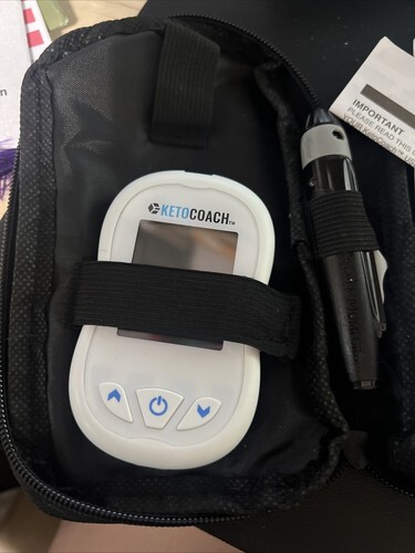 Keto Coach Meter with poker and lancets and test strips and zipper bag. Used once or twice. Test strips expired in 2022 but replacement products can be purchased online