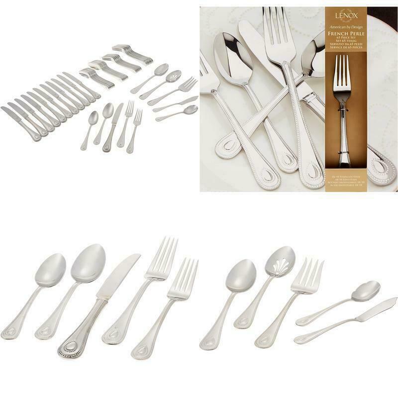 Lenox French Perle 65 PC Flatware Set Service For 12 Stainless 18/10 Beading NEW