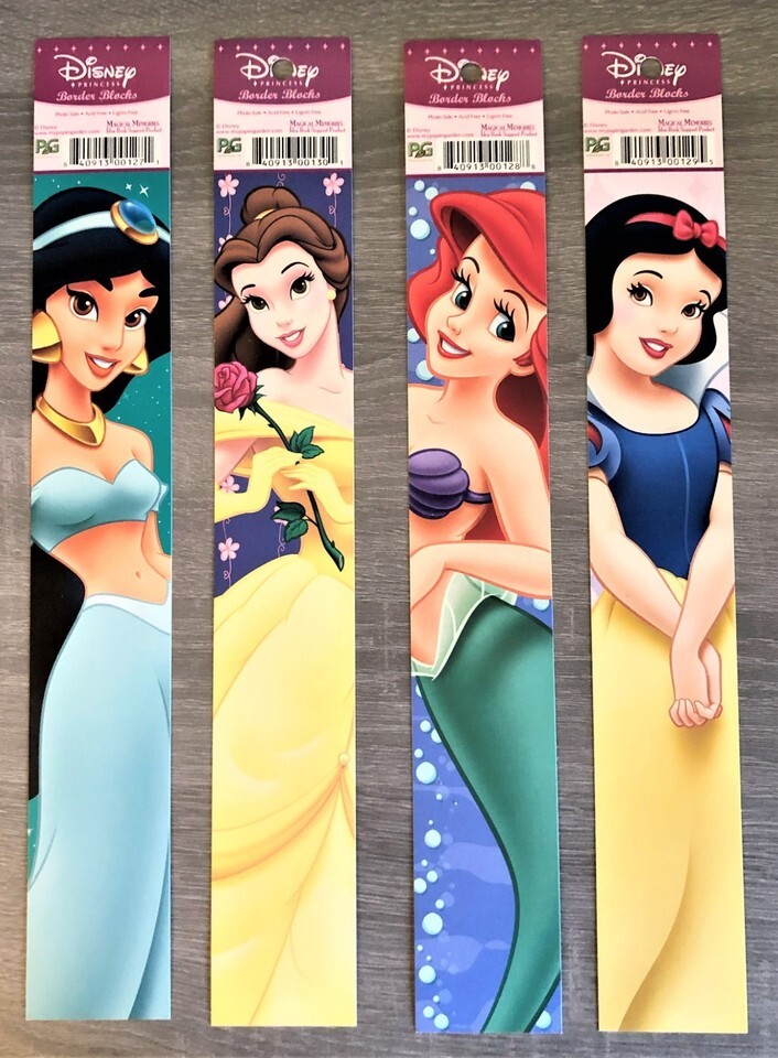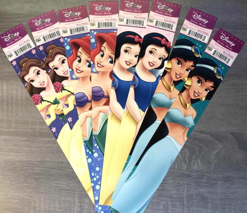 Disney Princess Scrapbooking Border Stickers Packs of 4 8 Strips. If you choose the 4 pack you will receive 1 of each princess shown in the pictures. If you choose the 8 pack of strips you will receive 2 strips of each princes shown in the pictures. Combined shipping is added to card when you buy multiple items from my shop.