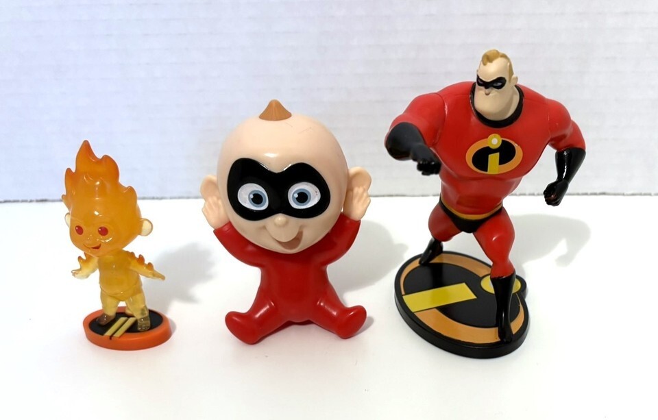 Disney Pixar The Incredibles lot mix of figures Happy Meal toys lot of 5. Baby Jack Jack, Fire Jack, Violet and two Mr. Incredible. The toys range in size from 2 1/2 -4 inches and are in good, clean, pre-owned condition. Calculated shipping is applied to cart when you purchase multiple items.
