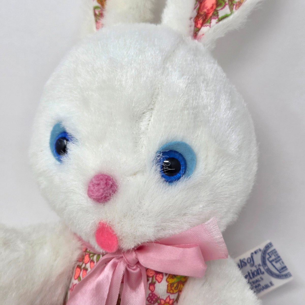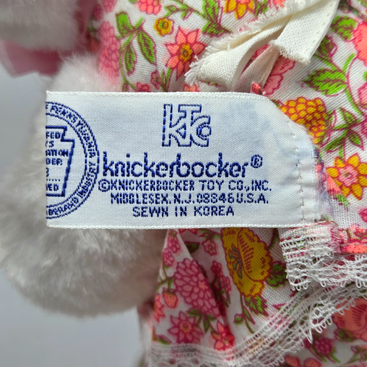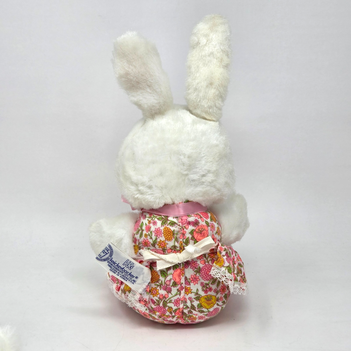 13" VINTAGE KNICKERBOCKER WHITE BUNNY RABBIT FLOWER EARS STUFFED ANIMAL PLUSH