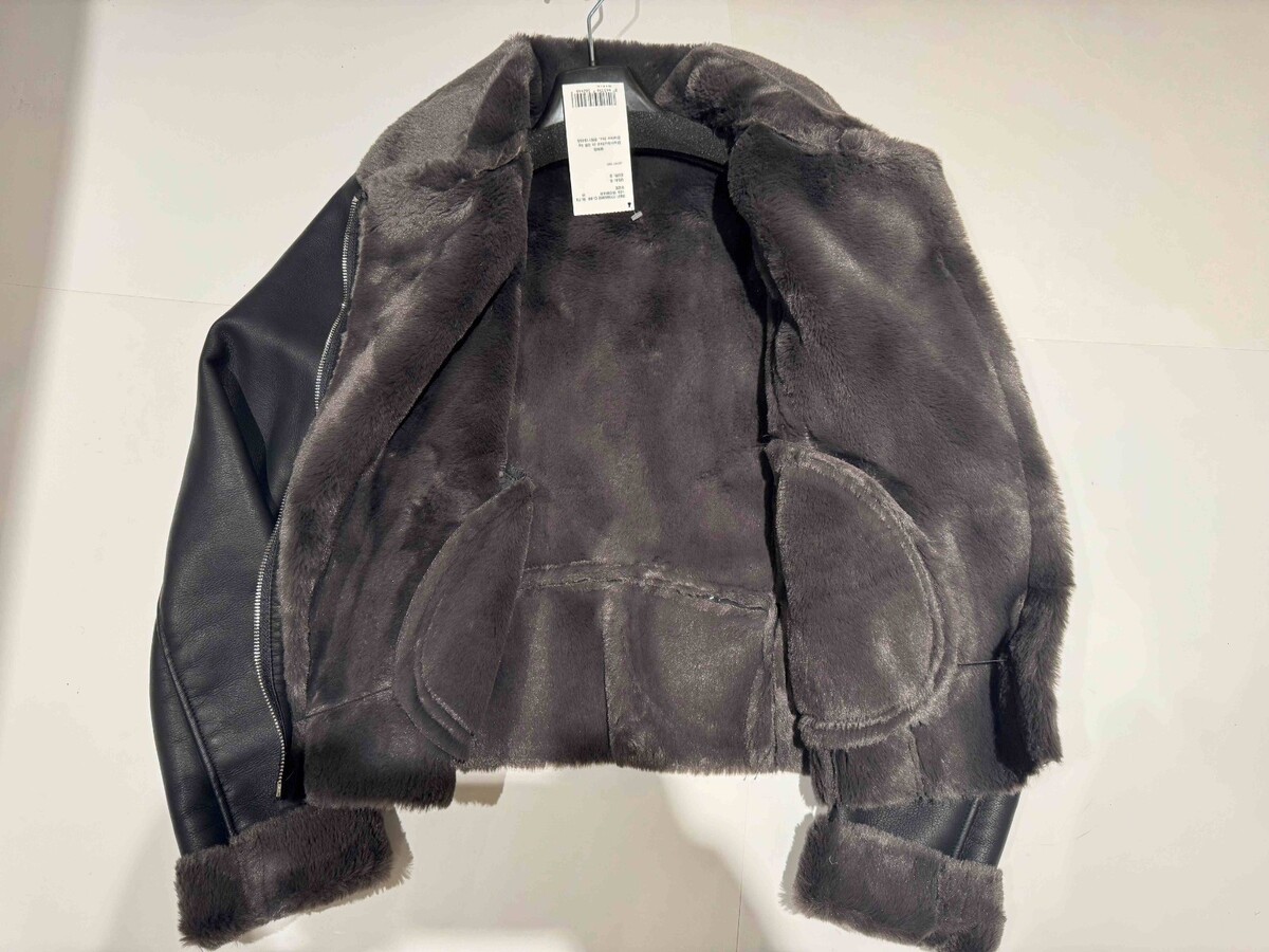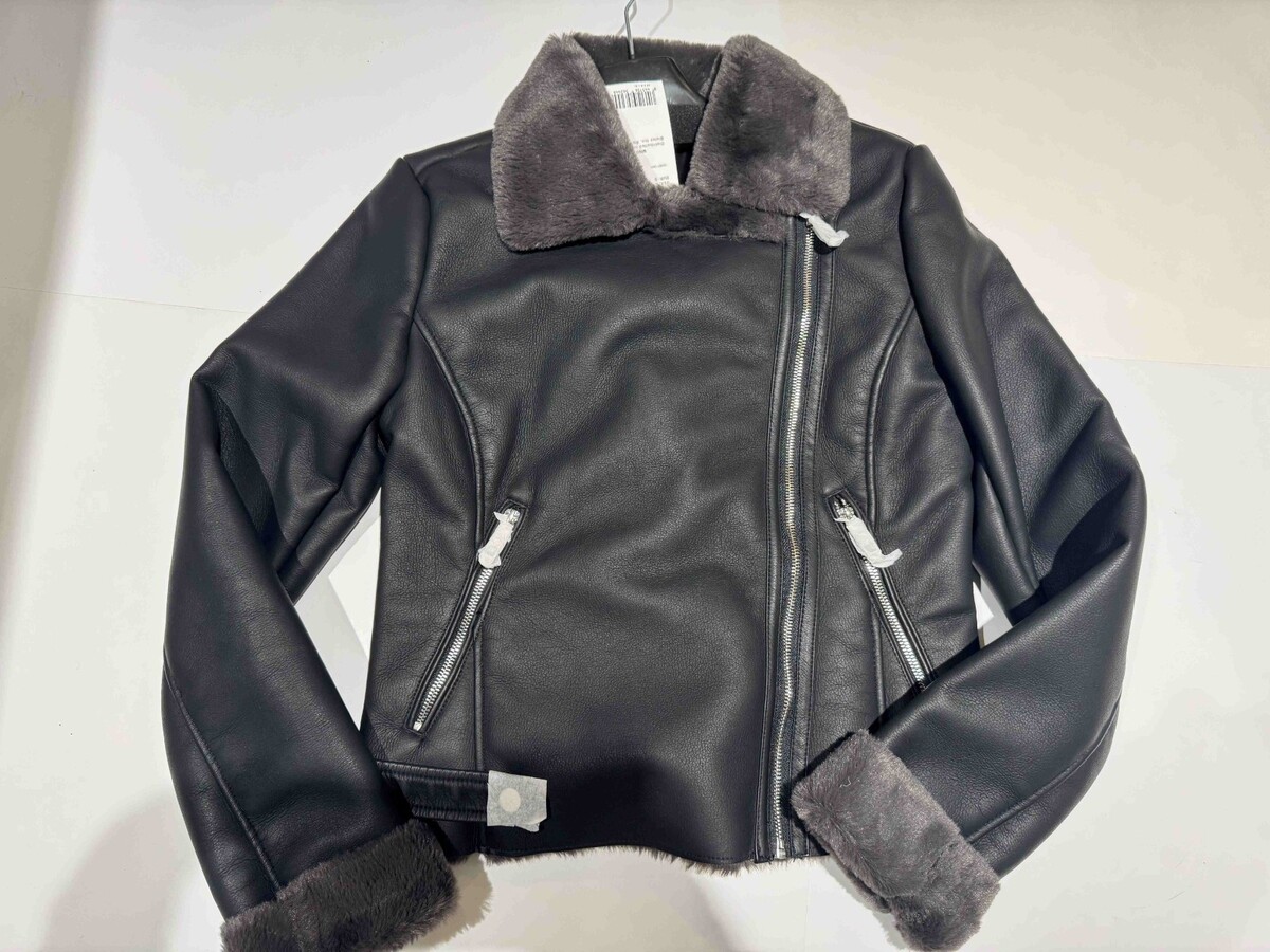 Mango MNG Women’s Faux Leather Jacket with shearling effect lining Charcol Med
