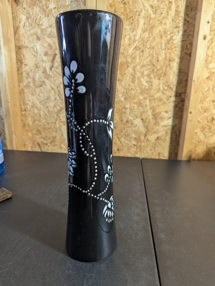 Black Ceramic 16" Floral Design Vase and similar items