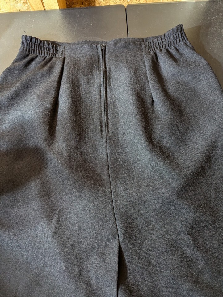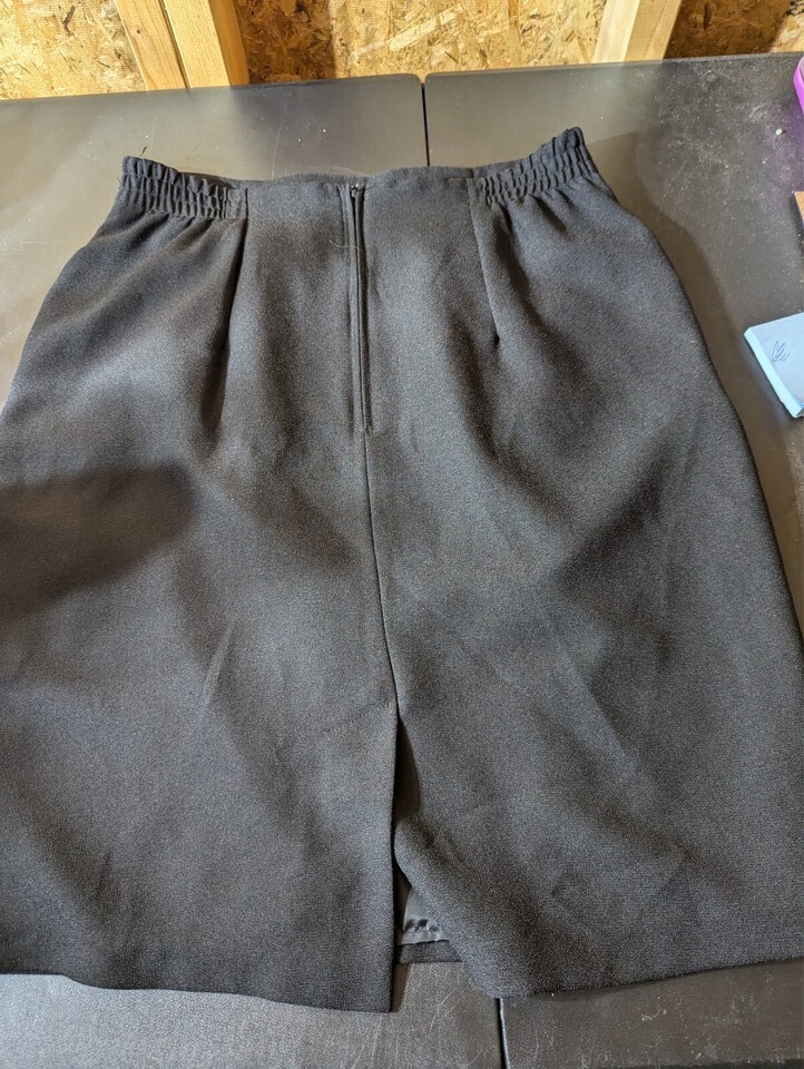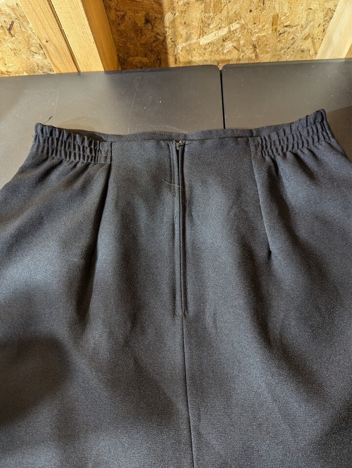 The skirt features a zip closure, button accents, and is lined for added comfort. It is recommended to dry clean only, and is a size 12 regular fit. This skirt is perfect for parties, cocktails, business events, or casual wear. Made in the United States, this skirt is a timeless piece that will never go out of style.