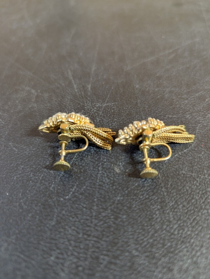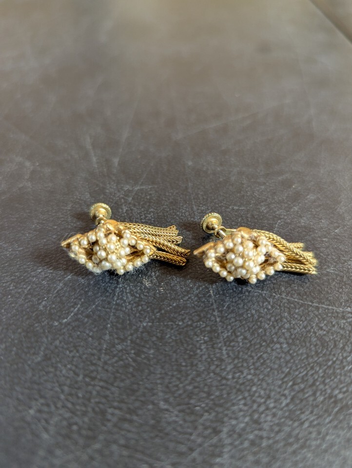 Pair Of Vintage Grand Trifari Gold Tone And Faux Pearl Screw Back Earrings