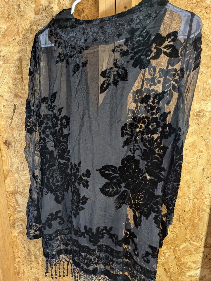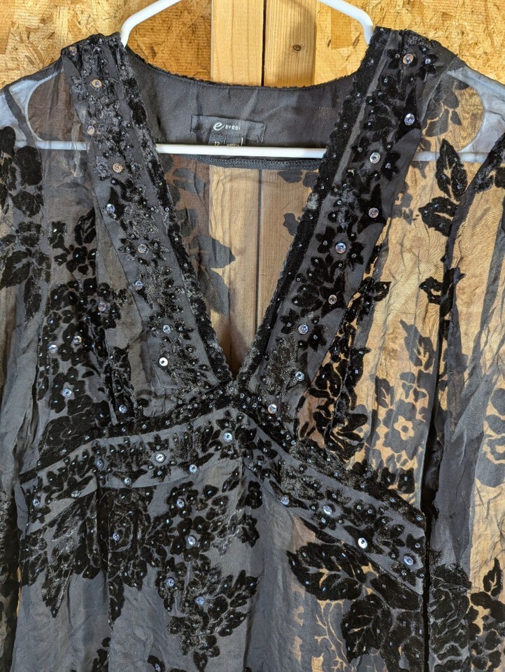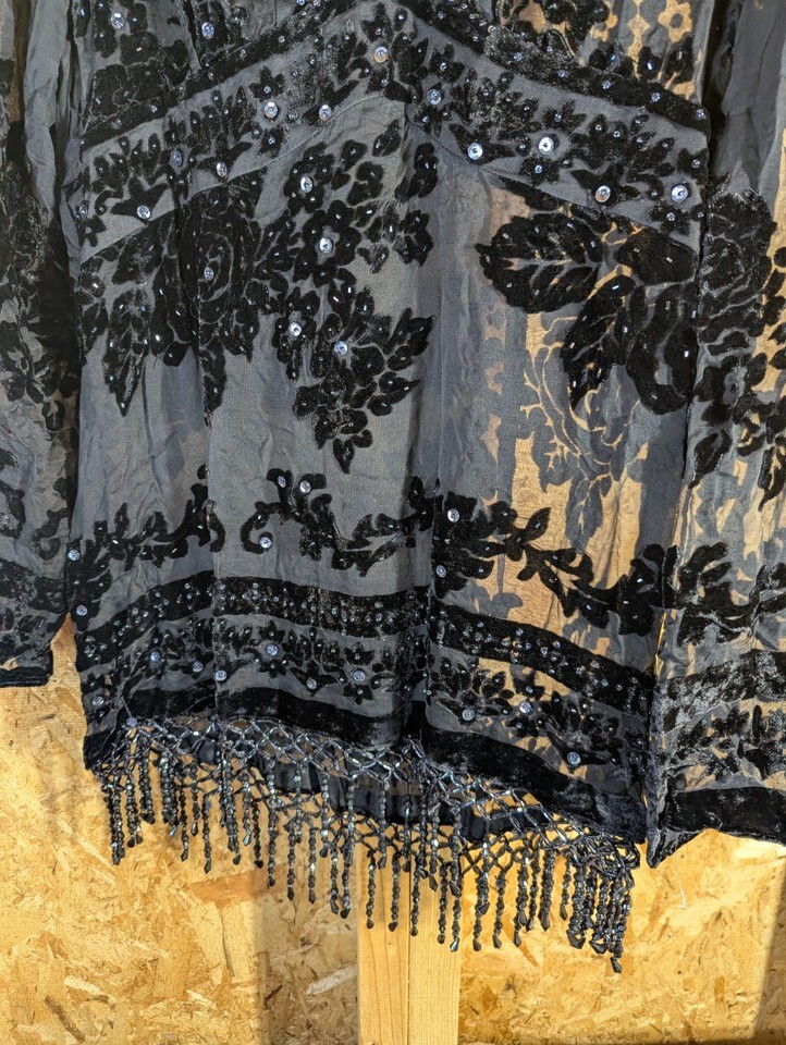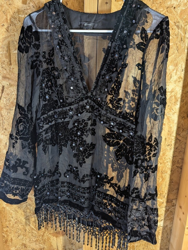 ECI Polyester Sheer Sequined And Tasseled Black Top